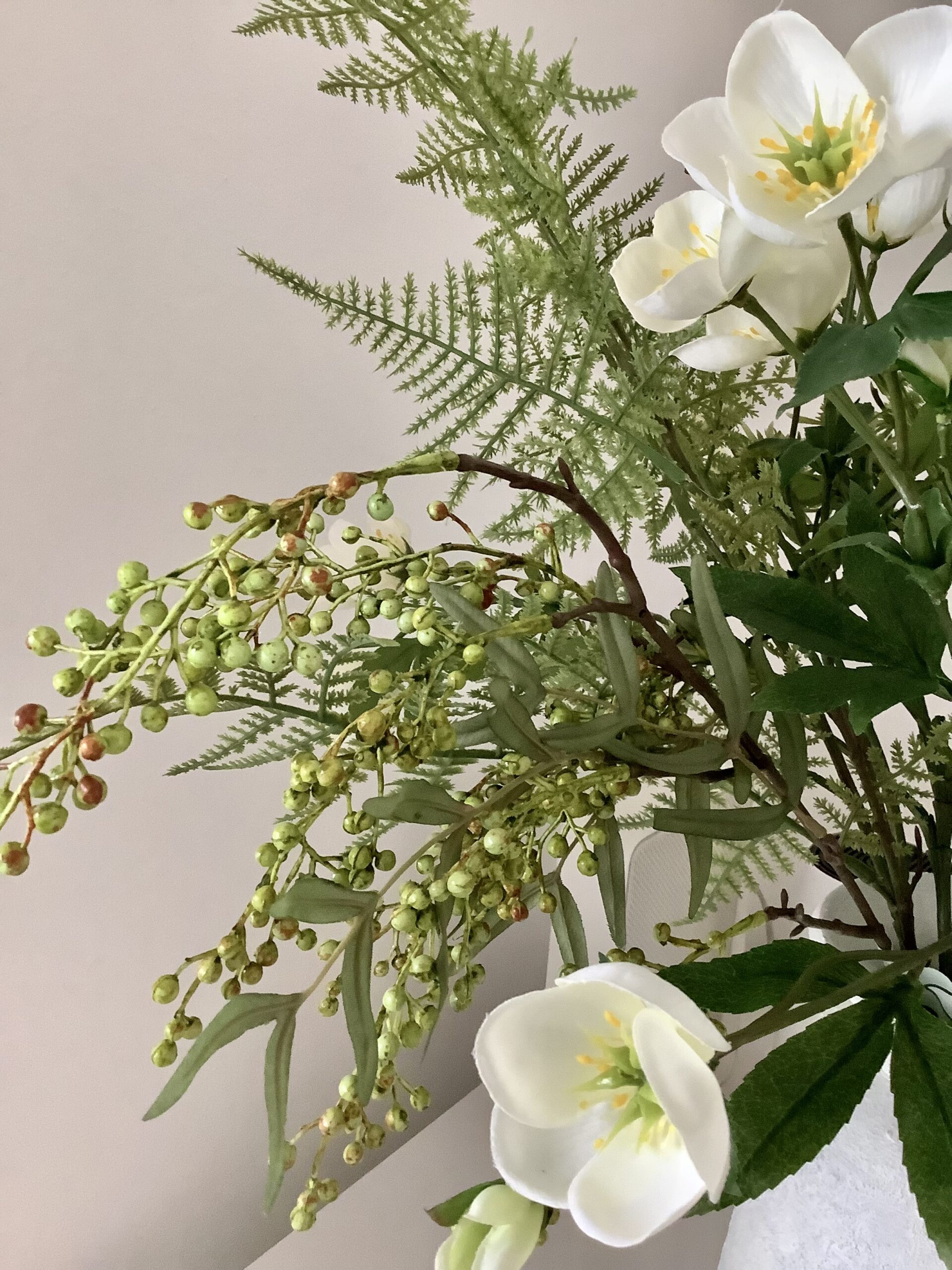 Helleborus wit kunstboeket hoogte 70 cm. excl vaas.