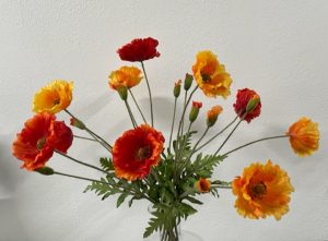 In de stelen van de oranje en Zijde Papaver in rood ook wel klaproos genoemd. zit ijzerdraad verwerkt.